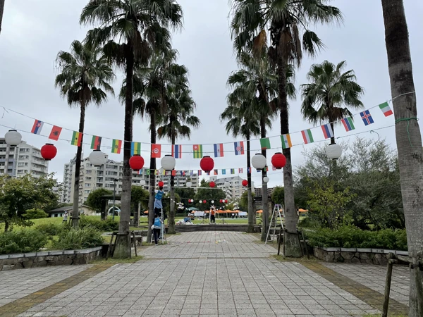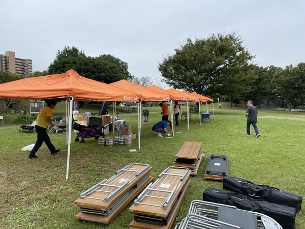 早朝から、たくさんのボランティアさんたちが駆けつけてくださり、設営を頑張っています!お祭りの成功に向けて、準備は着々と進んでいますよ💪。